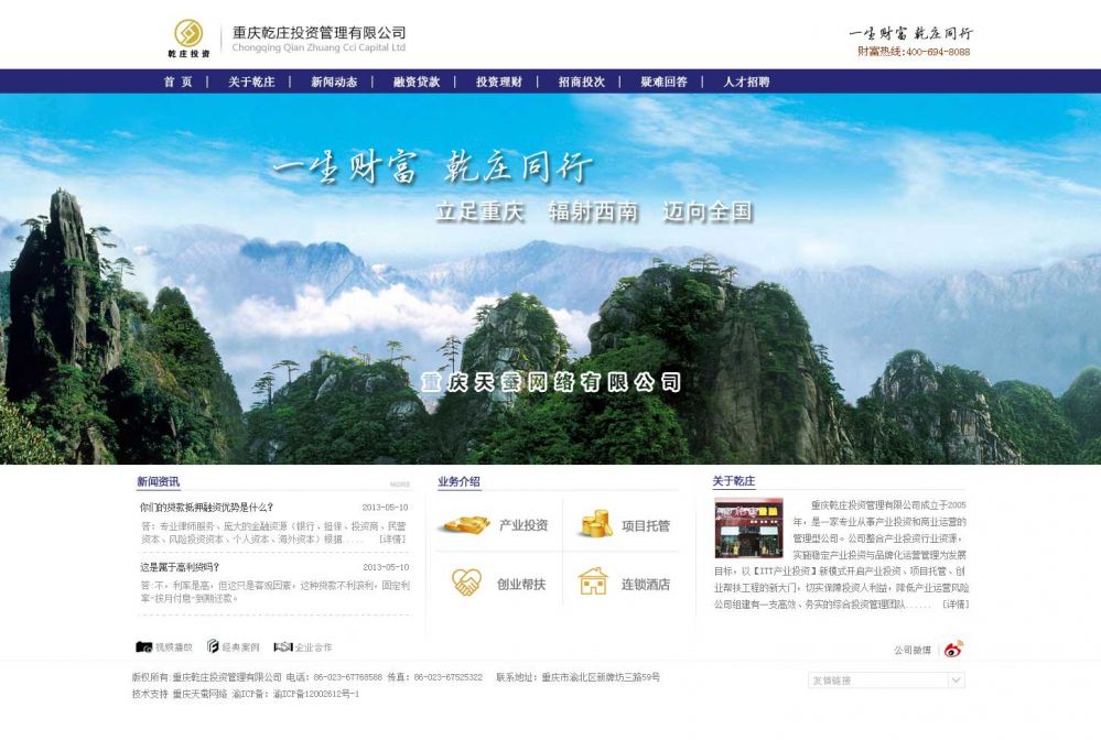 重慶乾莊投資管理有限公司成立于2005年,是一家專(zhuān)業(yè)從事產(chǎn)業(yè)投資和商業(yè)運(yùn)營(yíng)的管理型公司。