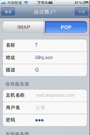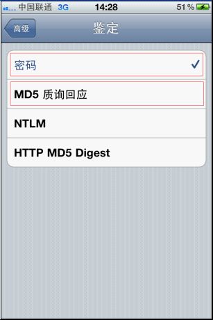 八、iPhone雖然默認的鑒定方式是“密碼”,但是實際上系統(tǒng)中使用apop方式,所以一般用戶設(shè)定好以后無法使用,可以先改變一種鑒定方式(如MD5等)并確定,再選回“密碼”方式,此時的iPhone就可以正常使用了。