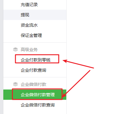 開通后,就可以使用【企業(yè)付款到零錢】與【企業(yè)微信付款管理】2種方式轉(zhuǎn)賬到個(gè)人微信錢包,如下圖所示: